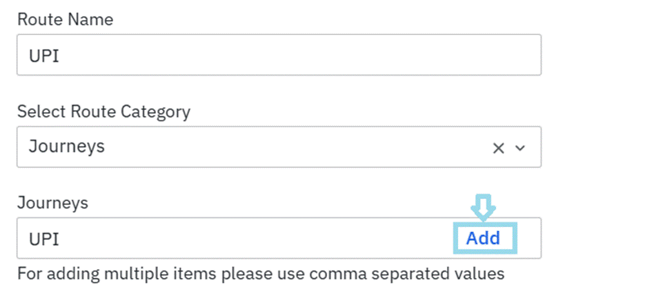 Step 4: Enter the Journeys name you would like to create a route for and click on Add as shown below. Example: UPI