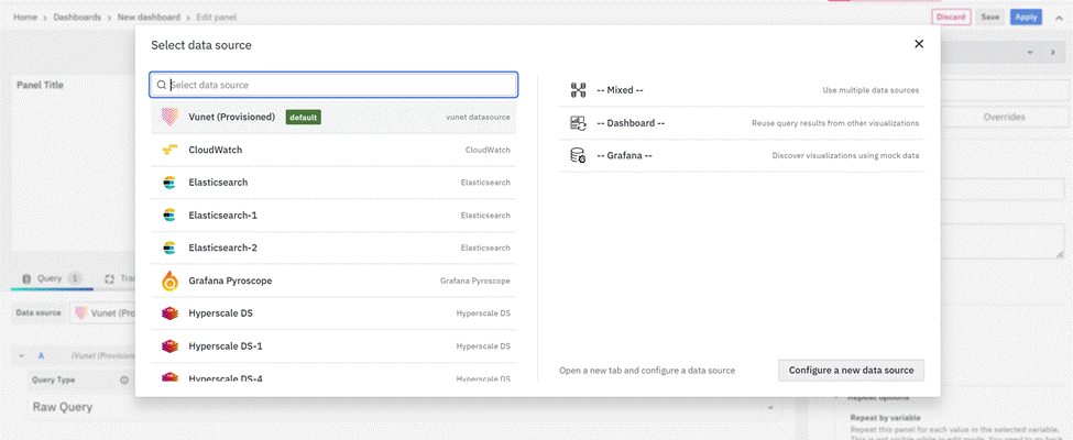 Before configuring, set the Data Source as “VuNet (Provisioned) ”, as Insights can be accessed only through this.