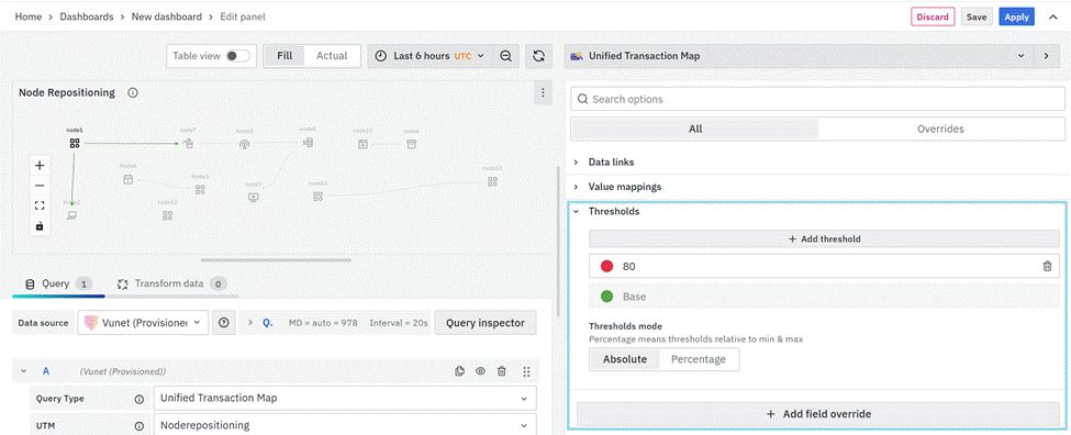 - As Percentages: Assign colors based on percentages. For instance, you can set CPU usage to be green at 0%, blue at 10%, yellow at 20%, red at 30%, and so on. This helps you quickly spot when values exceed thresholds, allowing for immediate action or error alerts.