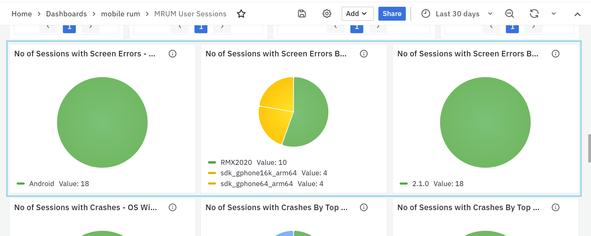 - Sessions with Screen Errors: Displays the number of sessions where users faced screen-related problems—like broken UI elements or slow screen loads. This helps identify screens that may need optimization.