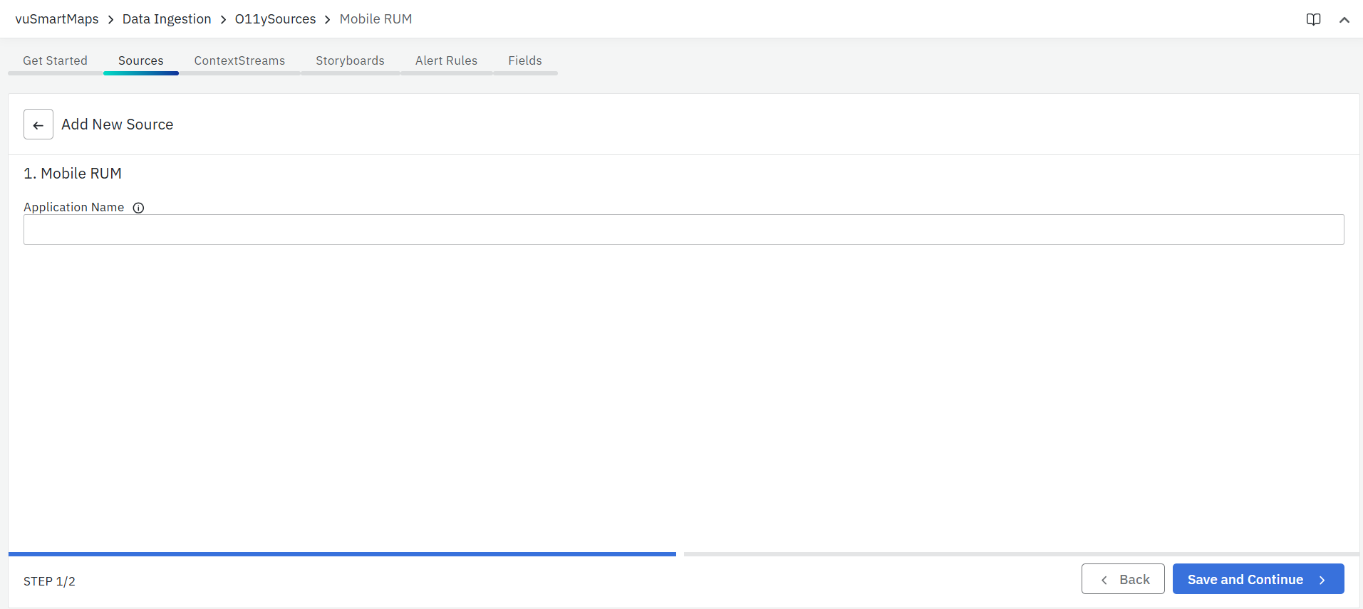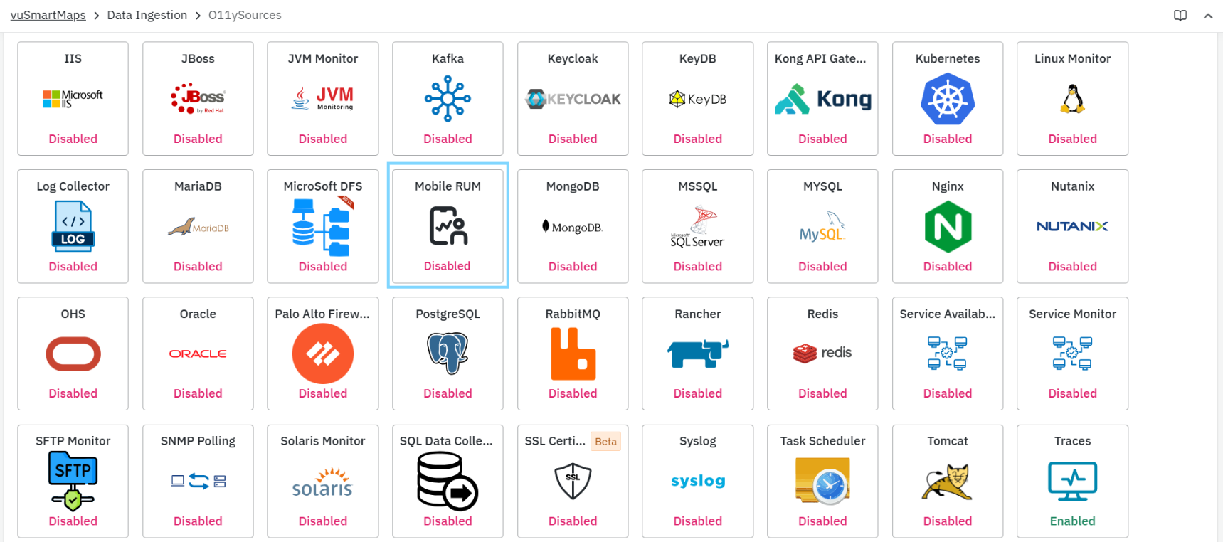 - From the vuSmartMaps left navigation menu, go to (Data Ingestion > O11ySources)