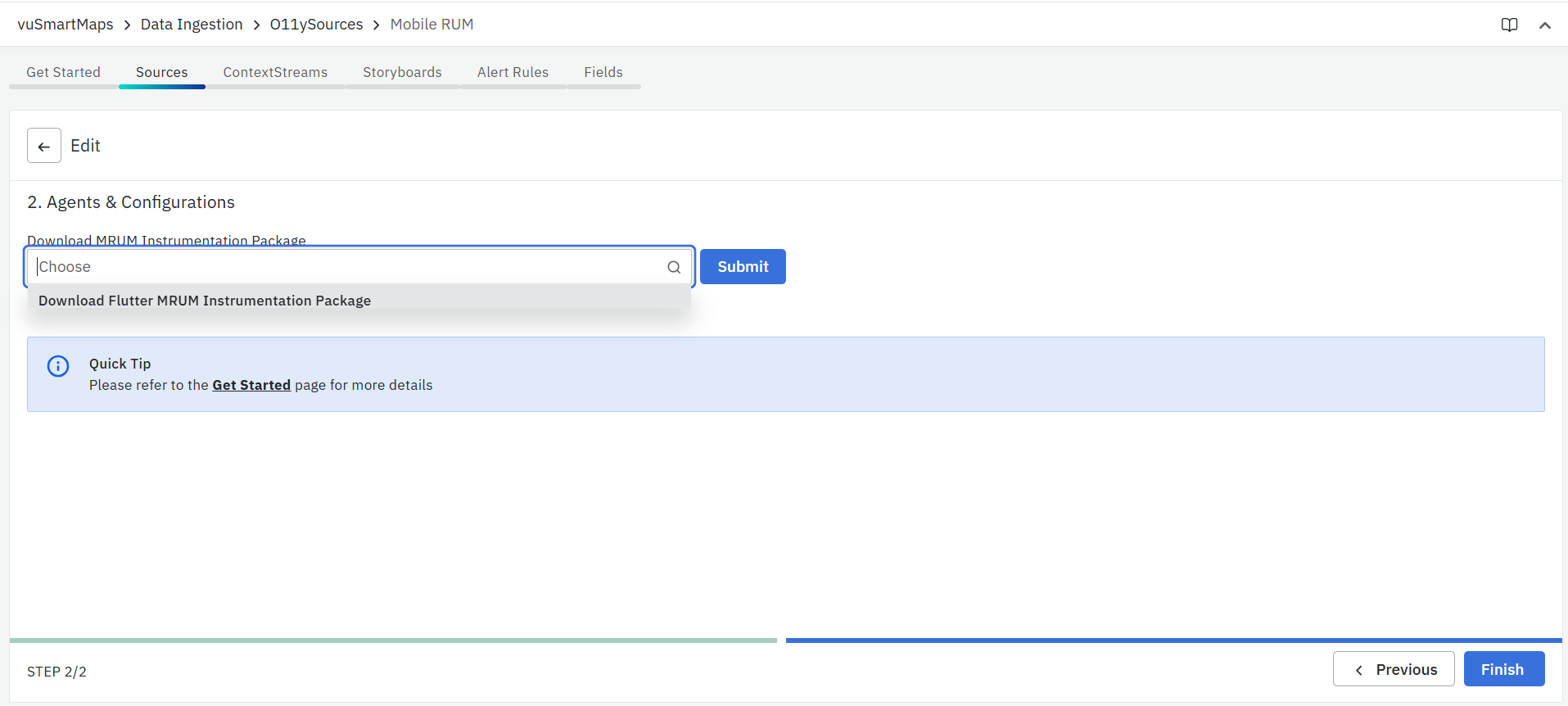 Click Finish to close the data source wizard and complete the configuration. Follow the instructions provided in the Client Side Mobile RUM Instrumentation.