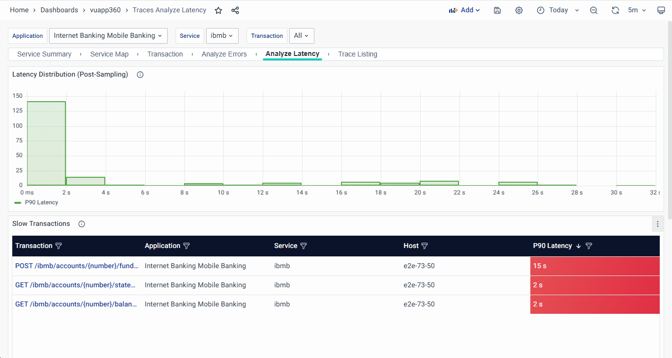- Transaction – Displays the API endpoint or function call where the latency issue was observed.